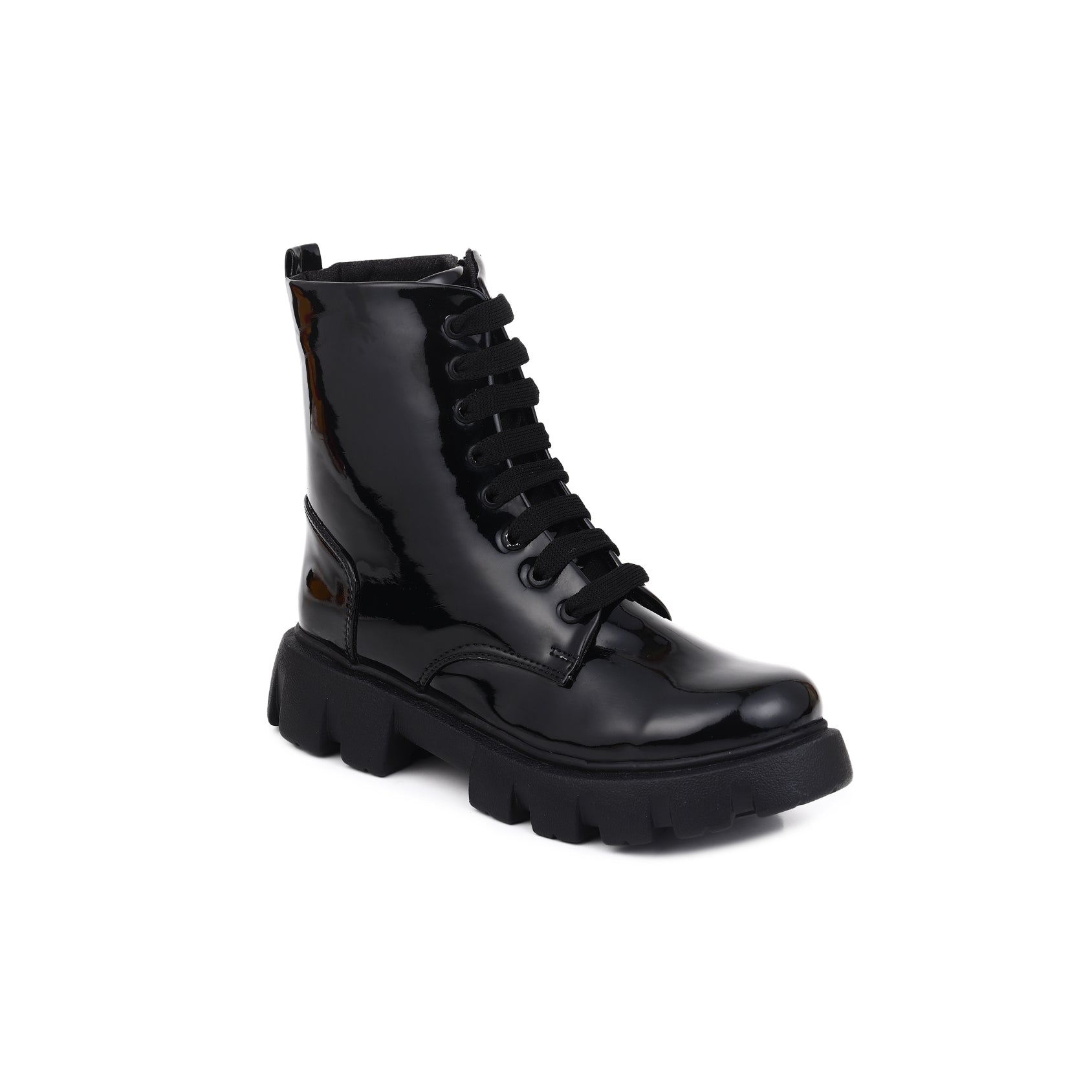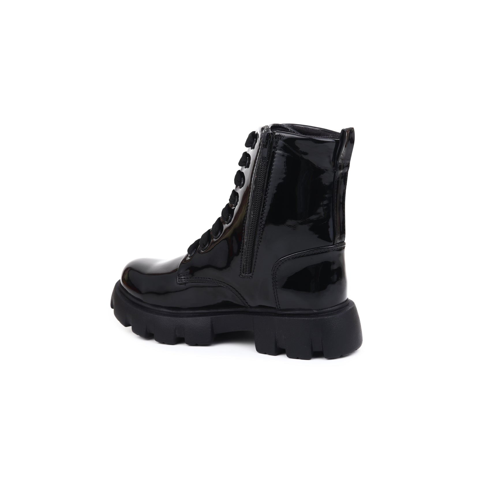 Patent Leather Black High Ankle Boots for Women