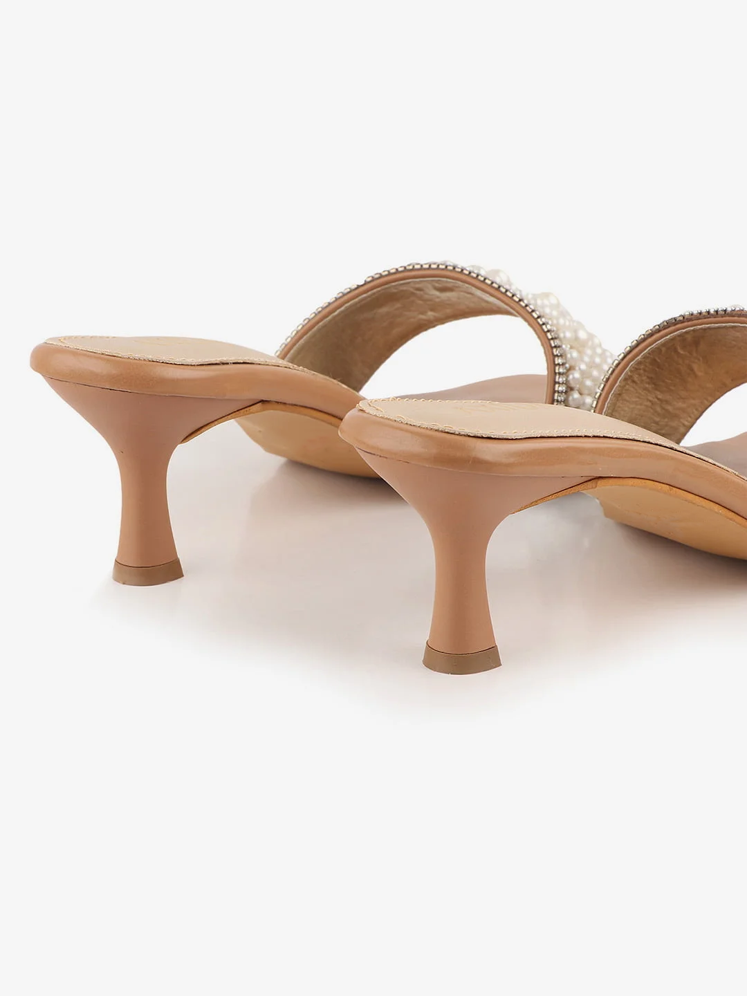 Pearl Embellished Beige Heels